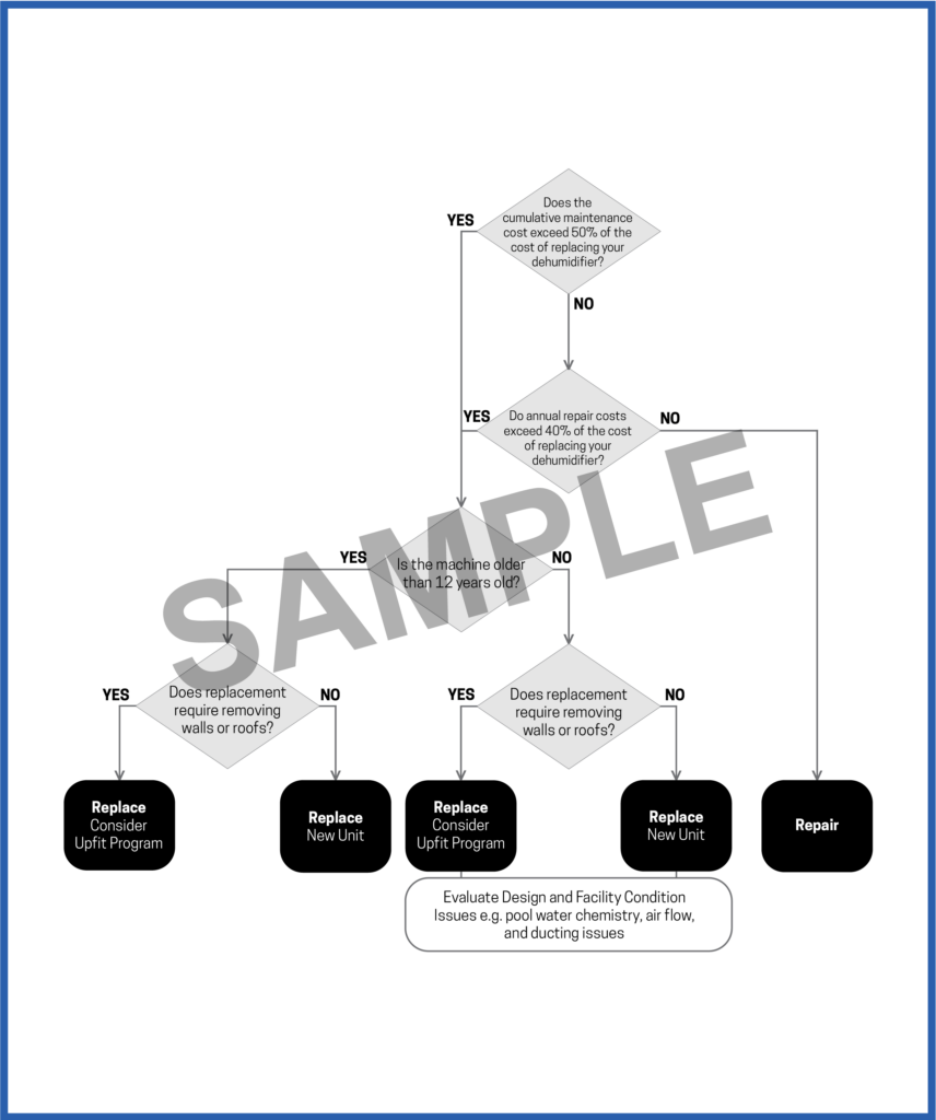 Repair costs are not only the price of new components, but they also include the labor required to perform the repair. Material and labor for building modifications as required may need to be considered as well.